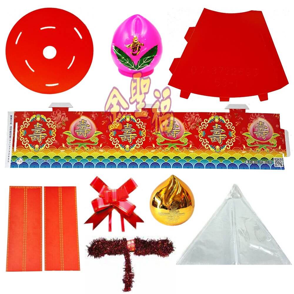 - 小金桃或小粉桃x2個(小粉桃有附壽字貼紙需自行黏貼)